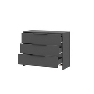 Особенности: Комод Камелия Графит оснащен тремя выдвижными ящиками, в которых удобно хранить постельное белье, домашний текстиль, одежду и другие нужные вещи. Комод отлично впишется в спальню, гостиную, прихожую, детскую и даже в офис. Роликовые направляющие ящиков позволяют им открываться легко и бесшумно. На фасадах установлены стильные накладные ручки черного цвета. Реальный цвет товара может отличаться от цвета товара на фотографии. Максимальная нагрузка на каждую полку - 5 кг.