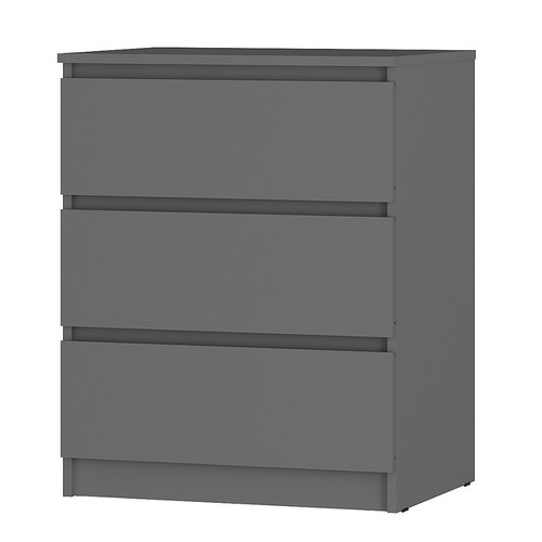 Особенности: Комод Симпл КМ-01 в цвете графит станет отличным дополнением для гостиной или спальни. Комод состоит из трех выдвижных ящиков. Отсутствие лицевой фурнитуры придает комоду стильный вид. Корпус и фасад выполнены из ЛДСП. Ящики оснащены шариковыми направляющими для плавного открытия и закрытия. Максимальная нагрузка на ящик - 5 кг. Можно компоновать с другими модулями из серии мебели Симпл.
