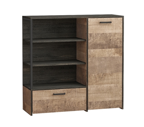 Особенности: Комод Трувор 13.307.01 N выполнен в цвете дуб гранж песочный с контрастной кромкой в цвете интра. Комод состоит из открытых полок, выдвижного ящика и отсека с полками и дверцей. Направляющие выдвижных ящиков скрытого монтажа. Можно компоновать с другими модулями из серии мебели Трувор. Реальный цвет товара может отличаться от цвета товара на фотографии. Поставляется в разобранном виде.