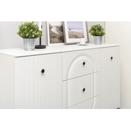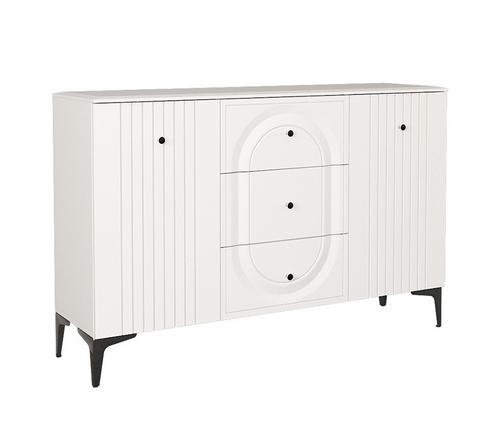 Особенности: Комод Валенсия 13.309.01 представляет собой идеальное решение для организации хранения вещей в интерьере. Он состоит из двух боковых секций с распашными дверцами и трех выдвижных ящиков по центру, что обеспечивает функциональность и удобство. Светлый и стильный дизайн комода помогает упорядочить пространство, добавляя уют и гармонию в комнату. Комод идеально подходит для хранения одежды, белья и различных аксессуаров. Вся лицевая фурнитура выполнена из металла, а графичное сочетание черного и хромированных деталей эффектно расставляет акценты на мебели. Фасады изготовлены из МДФ с матовой ПВХ-пленкой, а геометричный рисунок фрезеровки создает красивый светотеневой эффект. Это решение делает мебель визуально более мягкой, комфортной и расслабляющей. Высокие опоры обеспечивают удобство уборки с помощью робота-пылесоса. Универсальная сборка позволяет установить комод на любую сторону. Все выдвижные ящики и петли оснащены доводчиками. Можно компоновать с другими модулями из серии мебели Валенсия. Поставляется в разобранном виде.