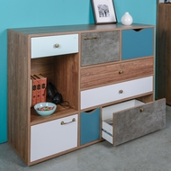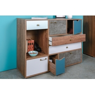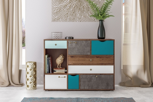 Особенности: Большой комбинированный комод Вайс 10.104 станет ярким акцентом в интерьере благодаря разноцветным фасадам. Он сочетает нежные, теплые цвета и строгие геометрические формы, что делает его универсальным элементом мебели. Комод Вайс идеально подходит для создания уютной и стильной атмосферы в любом помещении. Комод состоит из пяти выдвижных ящиков различной формы и вместимости, трех закрытых отсеков с распашными дверками и открытой ниши. Распашные двери крепятся на четырехшарнирных петлях без доводчиков, а выдвижные ящики работают на шариковых направляющих, обеспечивая легкость и удобство использования. Комод дополнен оригинальными металлическими ручками в цвете старое золото, что придает ему винтажный вид. Нижний фасад с ручкой-вырезом представляет собой ящик-шкатулку. Поставка осуществляется в разобранном виде, инструкция по сборке и комплект фурнитуры прилагаются.