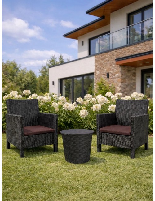 Комплект 2 садовых кресла и столик под ротанг СадКо (темно-серый с коричневой подушкой)