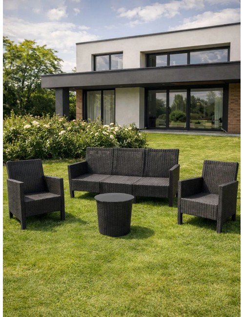 Комплект 2 садовых кресла, трехместный диван и столик под ротанг СадКо (темно-серый)