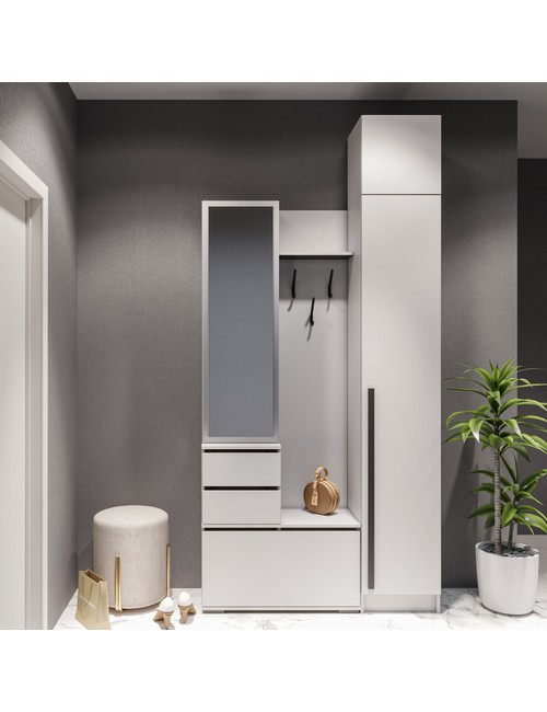 Комплект Бостон прихожая В2 и пенал П-400 с антресолью А400 (белый)