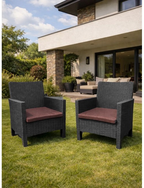 Комплект кресел садовых под ротанг 2 шт СадКо (темно-серый с коричневой подушкой)