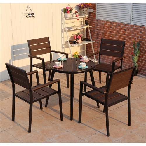 Комплект мебели из литого алюминия с ДПК стол D70 см Поливуд-3 и 4 кресел Поливуд-3