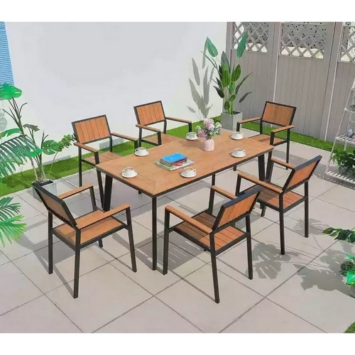 Комплект мебели из литого алюминия с ДПК стол Поливуд-9 160х90 и 6 кресел Поливуд-2