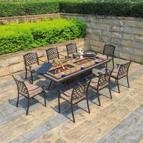 Комплект мебели из литого алюминия стол Барбекю-5 и 8 кресел Стиль (бронза)