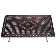 Технические характеристики: Обеденный комплект из литого алюминия состоит из стола и шести кресел с подлокотниками. Стол с прямоугольной столешницей, декорированной орнаментом. В центре столешницы отверстие для установки зонта. Комплект не требует специального ухода. Устойчив к воздействию влаги, солнечных лучей и низких температур. Не подвержен образованию коррозии. Упаковка рассчитана на 4 кресла. Подушки не входят в комплект и приобретаются отдельно.