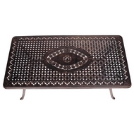 Технические характеристики: Обеденный комплект из литого алюминия состоит из стола и восьми кресел с подлокотниками. Стол с прямоугольной столешницей, декорированной орнаментом. В центре столешницы отверстие для установки зонта. Комплект не требует специального ухода. Устойчив к воздействию влаги, солнечных лучей и низких температур. Не подвержен образованию коррозии. Упаковка рассчитана на 2 кресла. Подушки не входят в комплект и приобретаются отдельно.