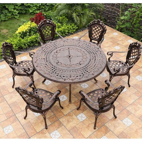 Комплект мебели из литого алюминия стол Вулкан (Volcano) D150 и 6 кресел Финляндия-4 (Finland-4)