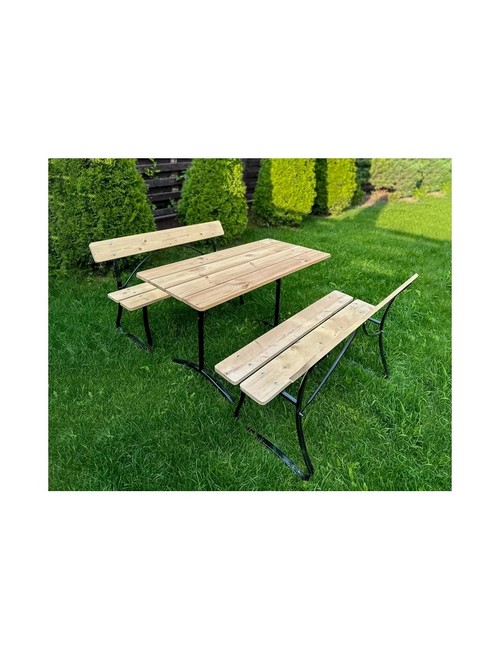 Технические зарактеристики: Комплект садовой мебели 2 скамьи Для двоих и стол Компакт. Комплект садовой мебели включает стол и две скамейки со спинками. Стол и скамейки выполнены из натурального дерева и прочного металла. Неокрашенное дерево дает возможность самостоятельной обработки воском, маслом, краской или морилкой для создания индивидуального дизайна. Прочный металлический каркас с порошковым покрытием обеспечивает устойчивость к коррозии и атмосферным воздействиям, гарантируя долговечность мебели. Комплект поставляется в разобранном виде для удобства транспортировки и хранения. Легкая сборка позволит быстро создать комфортное место для трапез и отдыха на свежем воздухе. Комплект идеально подходит для обустройства зоны отдыха на даче или в саду.