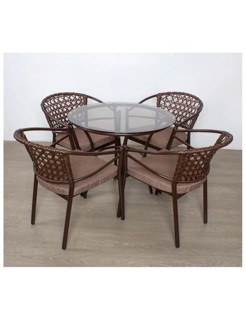 Комплект садовой мебели стол Ялта и 4 стула Латте с подушкой