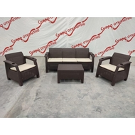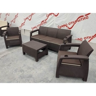 Технические характеристики: Комплект мебели серии Yalta Triple Set под ротанг имеет стильный и современный внешний вид, гармонично впишется в интерьер кафе, баров и ресторанов, а также для зоны отдыха вашего загородного дома, или дачи. В разобранном виде занимает мало места, легко собирается и разбирается, удобный в перевозки и хранении. В подлокотниках встроены специальные подстаканники. Прочный всепогодный плетеный пластик - имитация ротанга, полипропилен устойчивый к выгоранию. Долговечная неметаллическая рама не гниет, не ржавеет.