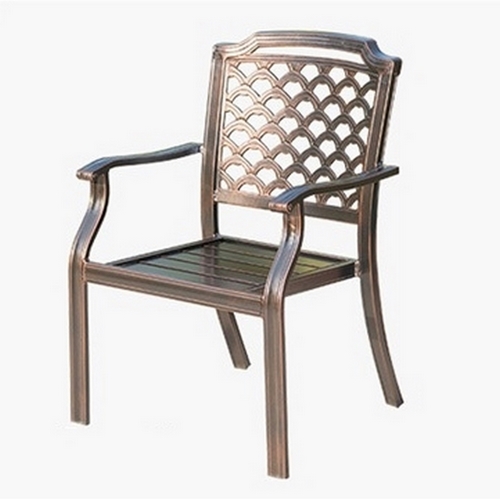 Технические характеристики: Кресло с подлокотниками из литого алюминия. Материалы изделия устойчивы к воздействию влажности и ультрафиолета. Не подвержен образованию коррозии. Идеальный вариант для использования как в помещении, так и на улице. Не требует специального ухода. Упаковка рассчитана на 4 кресла.