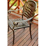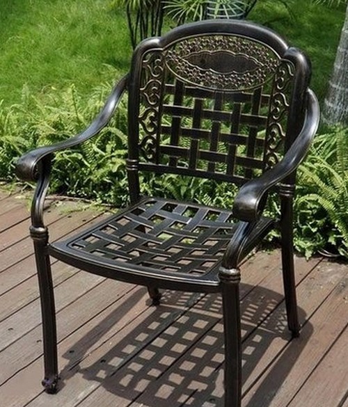 Дополнительно: Стул металлический с подлокотниками для дачи и сада. Стул украшен изящным узором. Выполнен из прочного литого алюминия, не боится перепадов температур, повышенной влажности. Подходит для длительного использования на улице. Подушки не входят в комплект!