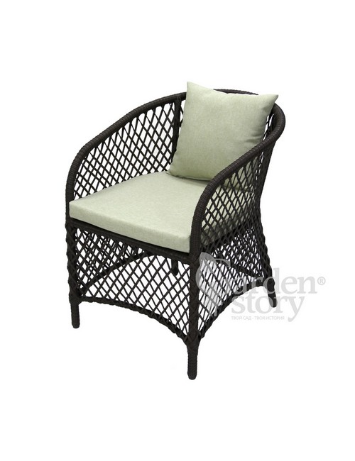 Кресло к набору Сакраменто (черный, ротанг коричневый, подушка хамелеон)