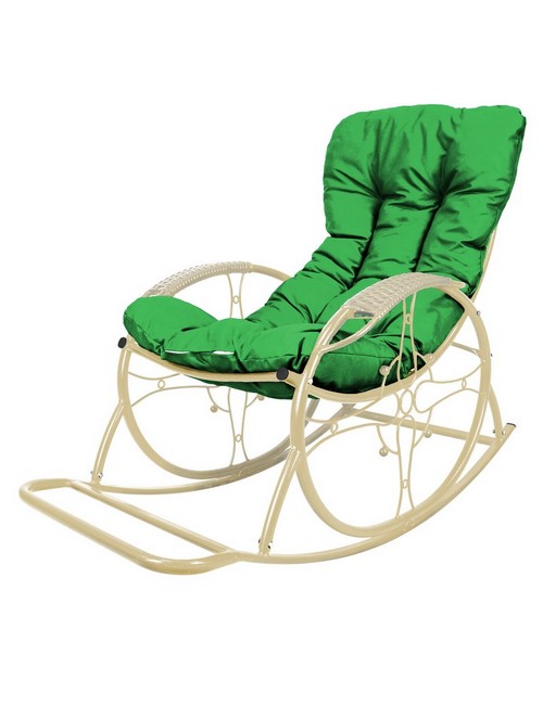 Кресло-качалка Овал ЛЮКС (бежевый с зеленой подушкой)