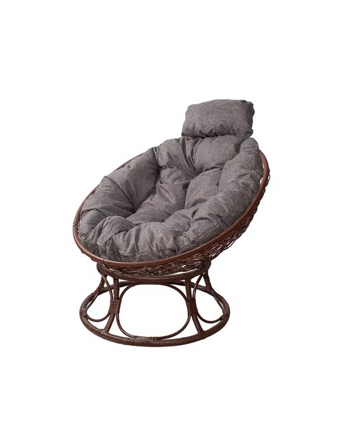 Кресло Папасан Home Мини с ротангом (коричневое, подушка Пепел)