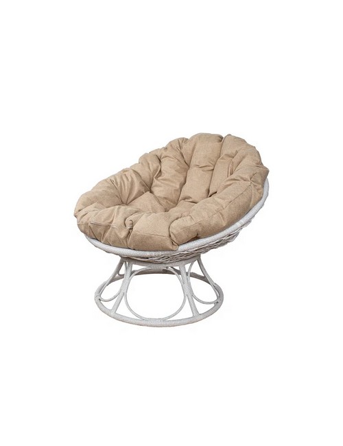Кресло Папасан Home с ротангом (белое, подушка Лен)
