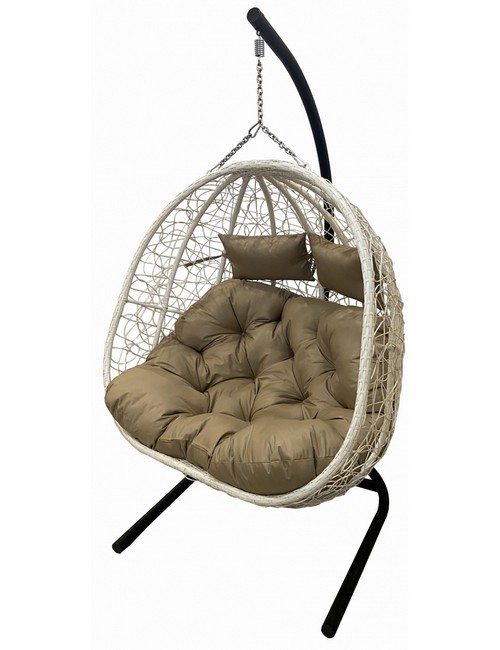 Кресло подвесное двойное Флора (белое с бежевой подушкой) D40-МТ006