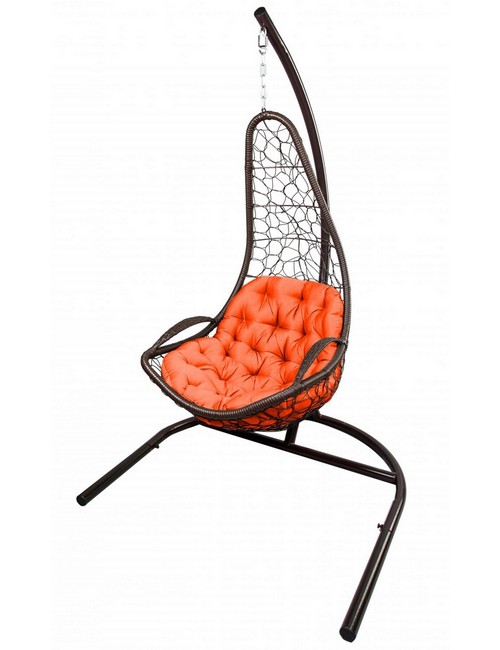 Кресло подвесное Кипр (темно-коричневое с оранжевой подушкой) 7028