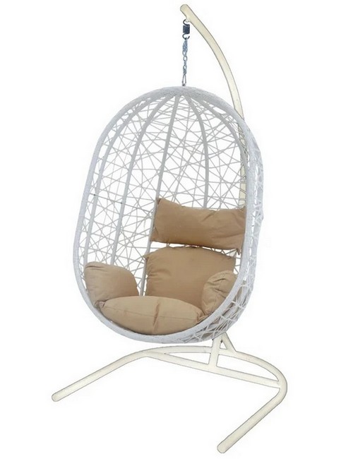 Дополнительно: Стильное подвесное кресло для дома и дачи. Каркас изготовлен из искусственного ротанга с металлической основой, стойка металлическая. В комплекте - мягкие подушки из водоотталкивающей ткани. Не требует особого ухода.
