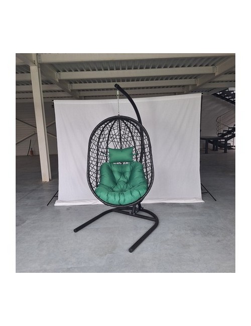 Дополнительно: Кресло подвесное Кокон XL зеленое состоит из 3 частей: стойка, основание, корзина. Размер корзины (ШхГхВ) - 91х72х128 см. Размер стойки (ШхГхВ) - 60х10х199 см. Размер основания - 102х120х7 см. Основание выполенено из стальной трубы с полимерно-порошковым окрашиванием. Диаметр трубы - 50 мм. Тип подвеса - металлическая цепь. Допустимая нагрузка - 120 кг.