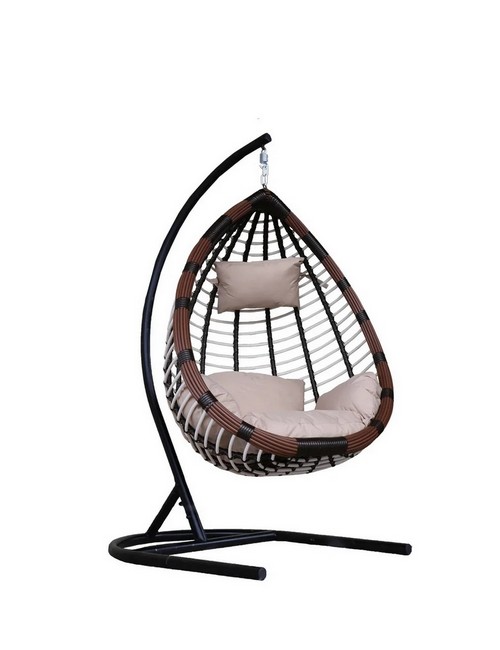 Дополнительно: Стильное подвесное кресло для дома и дачи. Каркас изготовлен из искусственного ротанга с металлической основой, стойка металлическая. В комплекте - мягкие подушки из водоотталкивающей ткани. Не требует особого ухода.