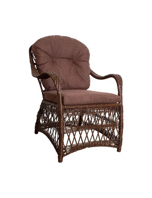 Технические зарактеристики: Кресло Прованс с подушкой (коричневый). Прочное и стильное кресло для комфортного отдыха на свежем воздухе или в помещении. Модель с мягкой подушкой создана для уютных посиделок на террасе, в саду или зоне барбекю, объединяя природную эстетику и высокую прочность. Плетеная фактура создает уютную, расслабленную атмосферу, характерную для эко-стиля, бохо, скандинавского дизайна и современной классики. Конструкция рассчитана на максимальную нагрузку до 110 кг, что гарантирует безопасность и комфорт даже при активном использовании. Кресло Прованс с подушкой подарит вам и вашим близким комфортный отдых в окружении природной эстетики, а его высокая прочность гарантирует долгие годы службы.