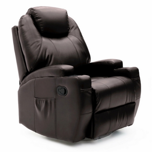 Технические характеристики: Кресло-реклайнер Киви сочетает в себе пять функций - качание, вращение, раскладывание, массаж и подогрев. Изготовлено из высококачественных материалов, обеспечивающих прочность и долговечность изделия. Кресло может поворачиваться на 360 градусов вокруг своей оси. Имеет механизм плавного качания, что способствует релаксации и отдыху. Легко раскладывается в полупроизвольное положение, поднимаются ножные опоры и спинка наклоняется в заданное положение. Встроенные массажные ролики. Обивка легко чистится и устойчива к истиранию. По бокам кресла и спереди подлокотников расположены карманы. Цвет может отличаться от представленного на фотографии.