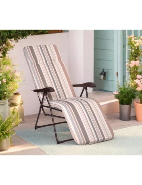 Дополнительно: Кресло-шезлонг Альберто-3 каркас коричневый, ткань серая, рисунок цветы выполнен из стальной трубы d18 мм. Каркас шезлонга с полимерно-порошковым окрашиванием. 6 позиций регулировки спинки и ножной секции.
