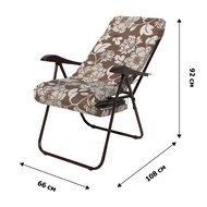Дополнительно: Кресло-шезлонг Машека арт.С399/129/1 коричневое рисунок белые цветы имеет регулировку спинки 6 позиций. Размер сидения - 440х510 мм. Размер спинки - 716х510 мм. Стальной каркас из трубы d22 мм. Толщина металла - 1 мм. Толщина мягкого элемента - 50 мм. Допустимая нагрузка - 130 кг. Механизм наклона - гребенка-фиксатор. Условия хранения - сухое,закрытое помещение с естественной вентиляцией, относительная влажность воздуха 40% - 75%.