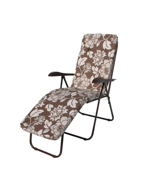 Кресло-шезлонг Машека коричневое рисунок белые цветы