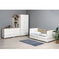 Особенности: Детская кровать Эйп 11.40 выполнена в актуальном цвете белый шагрень и декорирована оригинальным рисунком и кромкой в цвете дуб. Кровать оснащена тремя выдвижными ящиками на шариковых направляющих полного выдвижения. Корпус кровати изготовлен из ЛДСП, который отличается высокой износостойкостью и устойчивостью к механическим повреждениям. Кровать оснащена прочным основанием из настила. Максимальная нагрузка на спальное место 80 кг, на ящик - 3 кг. Высота спального места от пола - 26 см. Рекомендуемая высота матраса 12 см. Регулируемые опоры высотой 6 см позволяют легко компенсировать неровности пола. Передвижной ограничительный бортик обеспечивает безопасность малыша во время сна. Съемный мягкий элемент с карманами из износостойкой ткани Ультра Сэнд обеспечит удобное хранение игрушек и книг. Матрас и другие аксессуары приобретаются отдельно. Можно компоновать с другими модулями из серии мебели Эйп. Реальный цвет товара может отличаться от цвета товара на фотографии. Поставляется в разобранном виде.