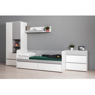 Особенности: Детская кровать Торонто 11.39 выполнена в базовом белом цвете в сочетании с акцентным серым цветом. Кровать оснащена двумя выкатными ящиками на колесных опорах. Ящики открываются за край фасада. Корпус изготовлен из ЛДСП, который отличается высокой износостойкостью и устойчивостью к механическим повреждениям. Максимальная нагрузка - 80 кг. Рекомендуемая высота матраса 12-17 см. Матрас в комплект не входит, приобретается отдельно. Можно компоновать с другими модулями из серии мебели Торонто. Реальный цвет товара может отличаться от цвета товара на фотографии. Поставляется в разобранном виде.