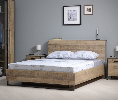 Особенности: Двуспальная кровать Трувор 11.34 N выполнена в брутальном стиле лофт. Кровать оснащена ортопедическим основанием с ламелями. Планкованное изголовье с изгибом имеет два варианта конфигурации с полкой и без нее. Каркас изготовлен из ЛДСП, который отличается высокой износостойкостью и устойчивостью к механическим повреждениям. Опоры у изножья выполнены из металла. Максимальная нагрузка - 200 кг. Рекомендуемая высота матраса 18 см. Матрас в комплект не входит, приобретается отдельно. Можно компоновать с другими модулями из серии мебели Трувор. Реальный цвет товара может отличаться от цвета товара на фотографии. Поставляется в разобранном виде.