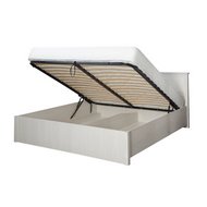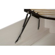 Технические характеристики: Матрас не входит в комплектацию и приобретается дополнительно. Изголовье кровати обрамлено профилем МДФ. Опоры из МДФ. Cпальное место - 140х200 см. Рекомендуемая высота матраса - до 23 см. Верхняя фигурная планка на изголовье из толстой плиты ЛДСП шириной 7 см. Кровать комплектуется основанием с подъемным механизмом с улучшенными газовыми пружинами. Распределенная нагрузка на такую кровать составляет 300 кг с учетом веса матраса. Основание опирается на центральную царгу из ЛДСП и металлические кронштейны по бокам. Внимание! Пока на основание не положили матрас, оно не опускается! Листы ХДФО свободно кладутся на дно короба, защищая вещи от пыли.