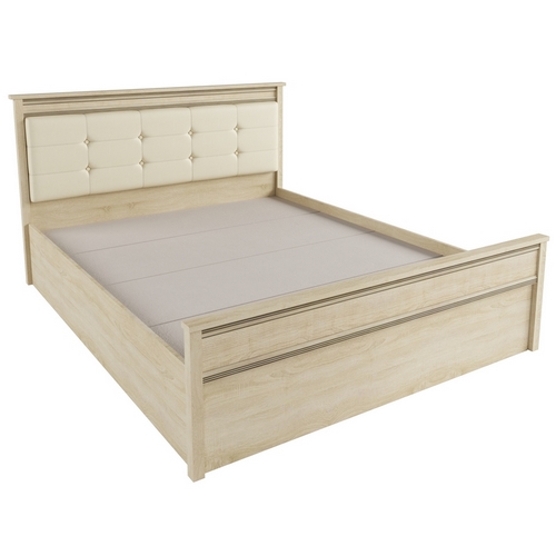 Особенности Кровати с настилом ЛДСП Ливорно ЛКР-1: Двуспальная кровать Ливорно с мягкой спинкой. Изголовье сделано из мягкой экокожи со стяжкой. Настил ЛДСП в комплекте. Матрас приобретается отдельно.