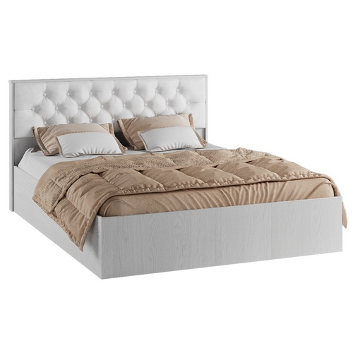 Особенности Кровати с настилом ЛДСП Модена МКР-1: Спинка кровати комплектуется мягкой белой вставкой из экокожи со стяжкой. Комплектуется настилом из ЛДСП. Размер спального места - 140х200 см. Сочетание цвета ясень анкор светлый с белой вставкой изголовья.