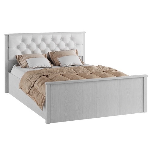 Особенности Кровати с ортопедическим основанием Модена МКР-2: Спинка кровати комплектуется мягкой белой вставкой из экокожи со стяжкой. Комплектуется ортопедическим основанием на опорах. Размер спального места - 140х200 см. Сочетание цвета ясень анкор светлый с белой вставкой изголовья.