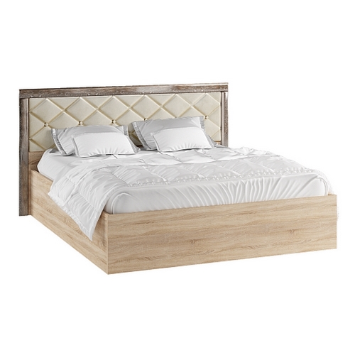 Особенности Кровати с подъемным механизмом Мадлен: Мягкое изголовье кровати с утяжкой в форме ромбов и декоративными пуговицами обтянуто эко-кожей цвета крем. Комплектуется подъемным механизмом с ящиком. Актуальный стиль. Универсальная цветовая гамма. Накладки из МДФ. Матрас не входит в комплект и приобретается отдельно.
