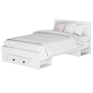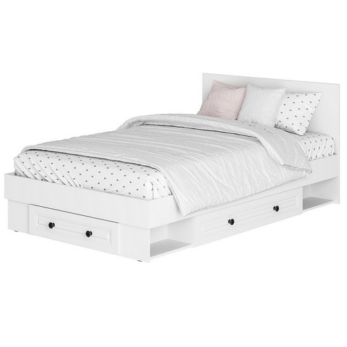 Особенности: размер спального места, см: 120х200, корпус ЛДСП, белый, фасад МДФ, эмаль белая, шариковые направляющие плавного выдвижения на ящике, комплектуется ДСП проложками, при желании Вы можете доукомплектовать кровать дополнительным ящиком, max нагрузка на спальное место до 100 кг, рекомендуемая высота матраса - от 18 см