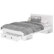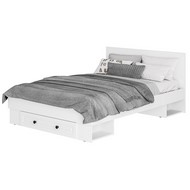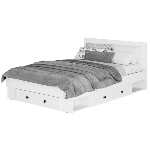 Особенности: размер спального места, см: 140х200, корпус ЛДСП, белый, фасад МДФ, эмаль белая, шариковые направляющие плавного выдвижения на ящике, комплектуется ДСП проложками, при желании Вы можете доукомплектовать кровать дополнительным ящиком, max нагрузка на одно спальное место до 100 кг, рекомендуемая высота матраса - от 18 см
