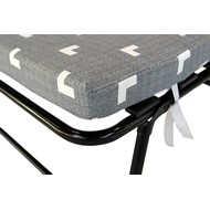Дополнительно: Кровать-тумба Мартина серая изготовлена на стальном каркасе (труба d25 мм). Узор ткани - тетрис. Габариты изделия в сложенном виде (ШхГ/ДхВ) - 80х90х23 см. Толщина металла - 1,2 мм. Толщина матраса - 70 мм. Тип основания - ламели деревянные. Допустимая нагрузка - 150 кг.