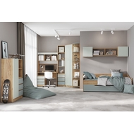 Кровать выдвижная Челси Color (дуб крафт, сумеречный голубой)