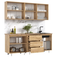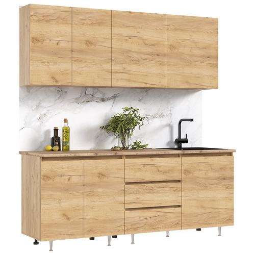 Размеры (см): Верхние модули: ширина - 200, высота - 71,8, глубина - 30 см. Нижние модули: ширина - 200, высота - 85, глубина - 60 см. *с учетом высоты опор и столешницы