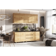 Особенности: Кухня Челси 2,0м компоновка 2 (дуб крафт, графит-кастилло) легко впишется в кухню любой площади. Дверцы - распашные. Петли накладные. Направляющие ящиков - шариковые.