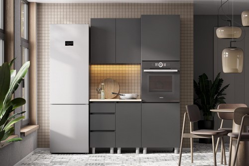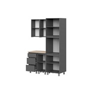 Особенности: Корпус ЛДСП, графит серый. Фасад ЛДСП, графит серый. Скрытая фурнитура. Направляющие ящиков: Роликовые. Опоры пластиковые регулируемые, 10 см. Столешница в комплект не входит.
