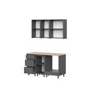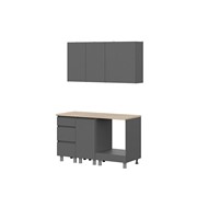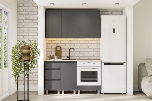 Особенности: Корпус ЛДСП, графит серый. Фасад ЛДСП, графит серый. Скрытая фурнитура. Направляющие ящиков: Роликовые. Опоры пластиковые регулируемые, 10 см. Столешница в комплект не входит.
